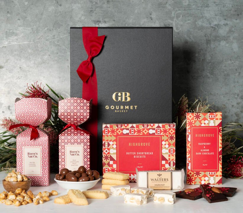 - Stylishly presented in our Gourmet Basket Signature Christmas Gift Box finished with ribbon, tissue and gift card