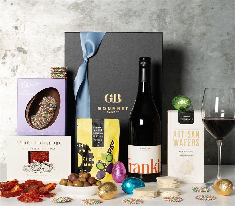 Indulge in the finer things this Easter with our elegant Shiraz and Savoury Gift Hamper! This hamper is packed with a selection of gourmet treats that are perfect for savouring with a glass of wine.