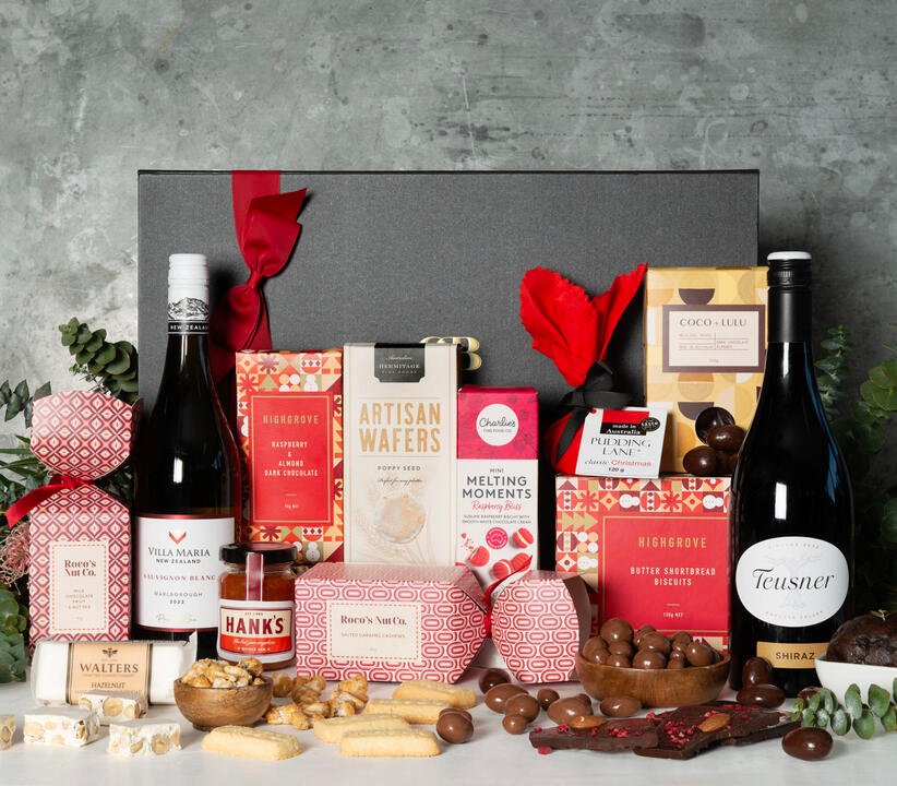 The perfect way to wish them a Merry Christmas! A delicious Christmas Hamper filled with holiday season favourites including classic wines, delicious chocolates and some sweet and savoury delights.